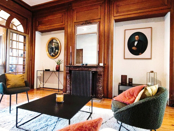 Home staging la halle immobilière à Lille. Maison de Maître avant/après. Travaux de finitions avec notre équipe et mise à disposition de meubles et décoration en location avec notre stock.